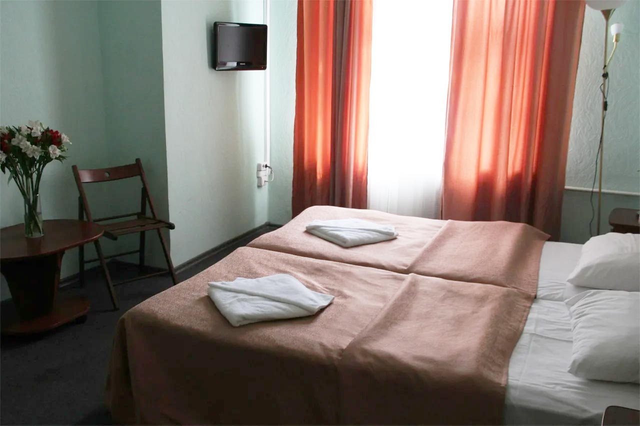 Двухместный номер с раздельными кроватями и общими удобствами (душ, туалет). В номере установлены 2 раздельные кровати, шкаф для одежды, телевизор.